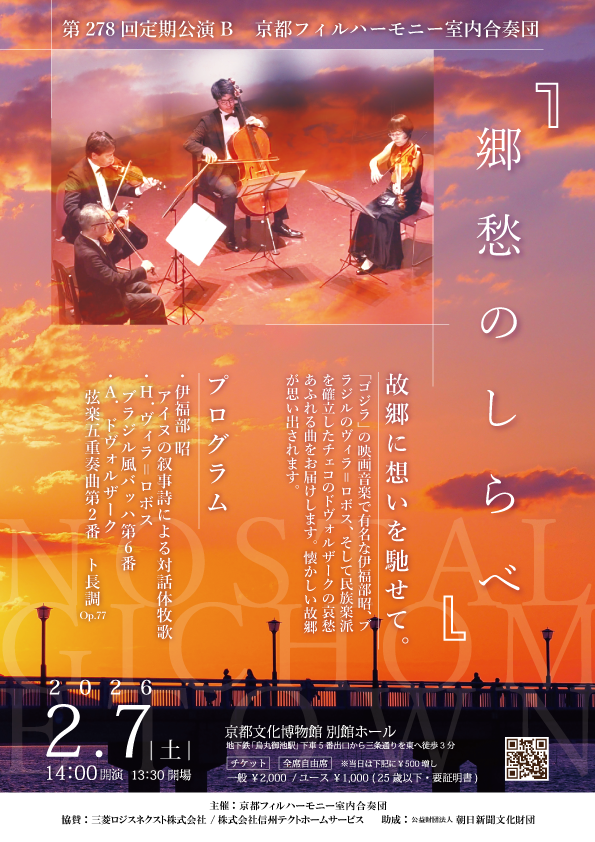 「ゴジラ」の映画音楽で有名な伊福部昭、ブラジルのヴィラ=ロボス、そして民族楽派を確立したチェコのドヴォルザークの哀愁あふれる曲をお届けします。懐かしい故郷が思い出されます。